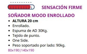 Colchón enrollado espuma Soñador Mood densidad 30kg soporta 90kg 80x190x20cm